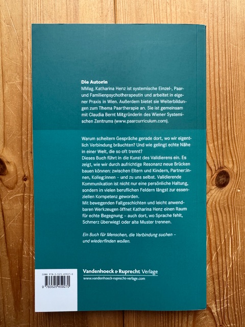 Die Soziologin und Psychotherapeutin Katharina Henz beschreibt das Validieren als Haltung, nicht nur als reines Kommunikationsmodell. Denn es geht darum, Menschen im Dialog ihre eigene Wahrheit zuzugestehen – ganz unabhängig davon, ob ich diese teilen oder verstehen kann. Es geht beim Validieren darum, dem Gegenüber (oder auch sich selbst) zu „erlauben“ seine Wahrnehmung anzuerkennen. Nötig und wichtig ist dies laut der Autorin zum Aufbau von Beziehungen, für den das gegenseitige Wahrnehmen eine Grundlage darstellt.