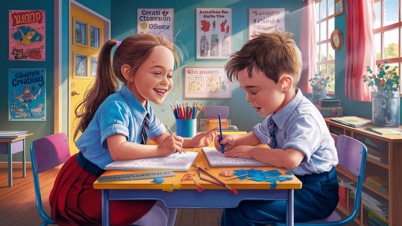 Symbolbild „Kinder beim Lernen“, mit ideogram.ai generiert.