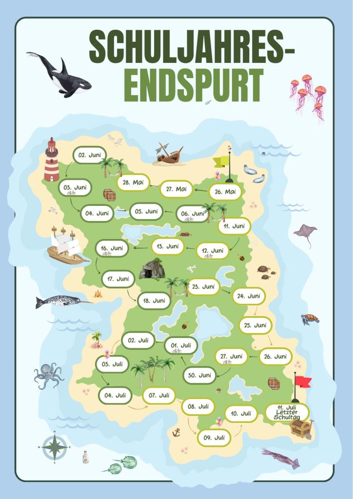 Da mein Junior die Schultage bis zu den Sommerferien zählt und mein Gedächtnis das nicht so gut speichert, habe ich ihm mit Canva eine Visualisierung gebastelt:
