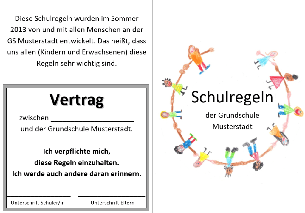 Aus eigener Erfahrung bei der Entwicklung von Schulregeln kann ich eine Vorgehensweise beschreiben, die tendenziell dem offenen Weg entspricht und die ich genau so auch immer wieder für meine Klassenregeln genutzt habe: Vor Jahren ging es darum, dass es für alle geltende Schulregeln an meiner Schule geben sollte, die auch im Forum visualisiert und als Vertrag an die Kinder und Eltern ausgegeben werden sollten. Dazu haben wir dann in allen Klassen mit den Kindern gesprochen und die Vorschläge der Kinder gesammelt. Einige Lehrkräfte schrieben zentral mit, andere erhoben die Ideen der Kinder mit Zetteln. Aus allen sich doppelnden und ergönzenden Vorschlägen extrahierten wir damals etwa 20 Regeln, die nummeriert und jeweils auf einem A4-Zettel an einem Fenstergang entlang aufgehängt wurden. Nach einer Woche „Einwirkzeit“, in der jede Klassenleitung einmal mit ihren Kindern alle Regeln gelesen und ggf. geklärt hatte, bekamen alle Kinder drei Klebepunkte und sollten diese auf die für sie wichtigsten Regelzettel kleben. Um die Beeinflussung durch Freund:innen oder schon geklebte Punkte zuminimieren, sollte vorab jedes Kind seine drei Regeln (Nummern) auf einen kleinen Zettel schreiben. So ergab sich ein gutes Stimmungsbild, das noch zwei Tage hängen blieb, bevor wir dann unsere Schulregeln zusammenstellten. Es waren letztendlich genau zehn Regeln, die deutlich am häufigsten bepunktet worden waren. So ging das Ganze dann seitdem an alle Eltern und Kinder (in den Kreis, den Schülerinnen gezeichnet hatten, konnte jedes Kind sich selbst als Teil der Schul- und Regelgemeinschaft einzeichnen):