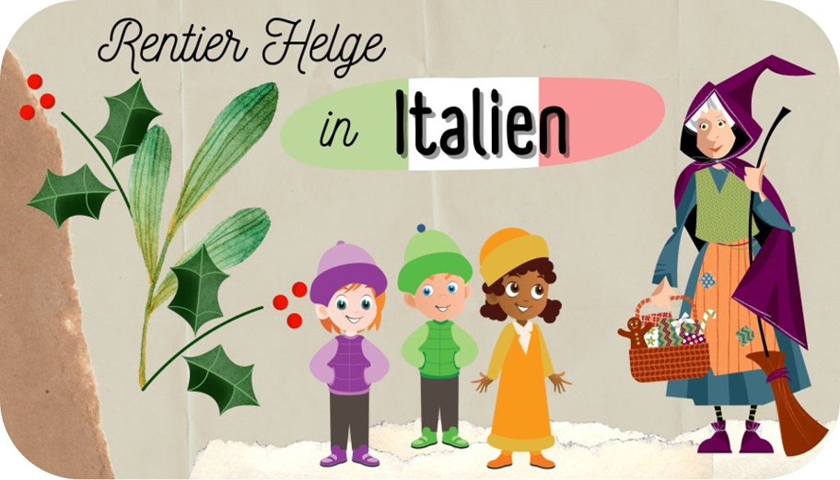 Ich darf nun also Teil dieses Projekts sein und habe Tag 20 in die Sprachaufnahme-App meines Tablets eingelesen. Außerdem hat jede*r die ppt-Folie zu seinem Tag gestaltet (in diesem Buch geht es um Weihnachten in verschiedenen Ländern, so dass jedes Bild ein Land zeigt). Für Italien habe ich Canva genutzt und mein Bild so gestaltet: