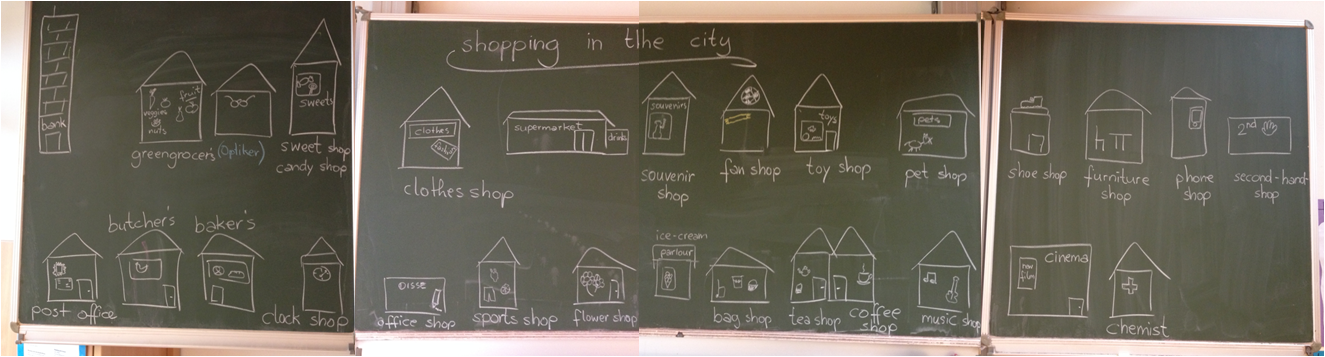 Diese Woche hat mich eine Kollegin mit in ihre vierte Klasse genommen, die gerade das Thema „shopping“ angefangen hat. Da die Motivation, selbst zu sprechen, bei den Kindern nicht so hoch ist, habe ich eine Doppelstunde geplant, die genau das fördert: das neu erlernte Vokabular (shops) wurde in Sätzen mit bekanntem Wortschatz (pets, clothes, food, …) verknüpft.