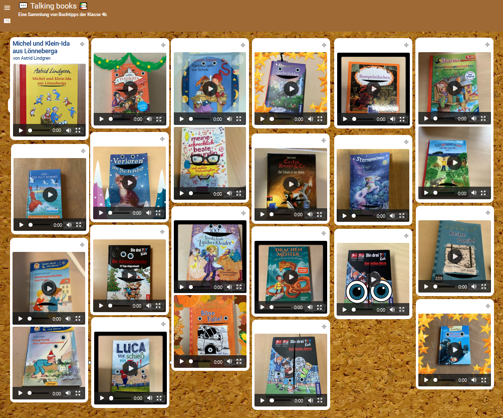 Auch aus Zeitgründen sammelte ich die Tablets der Gruppen und airdroppte die Ergebnisse auf mein Gerät. Das ist sonst etwas, das ich sehr gern mit den Kindern mache (Medienkompetenz!). Nun muss ich nur noch die Titelfolien einsprechen und die Fehler aus den Texten kriegen, bevor ich alles zusammenfüge („Bücher kombinieren“) und als Video exportiere. Da werden die Kinder nächste Woche bestimmt stolz auf ihr Ergebnis sein!